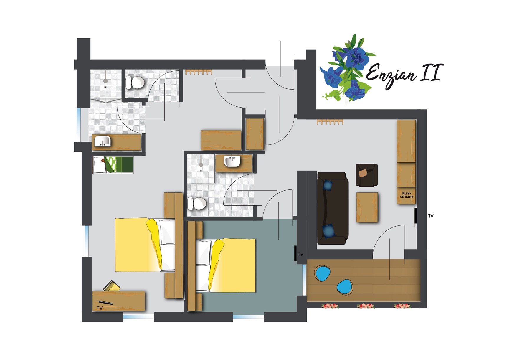 Großzügig, bequem und funktionell - so präsentiert sich der Zimmertyp "Edelweiß" seinen Gästen und bietet Wohnlichkeit und Behaglichkeit.
