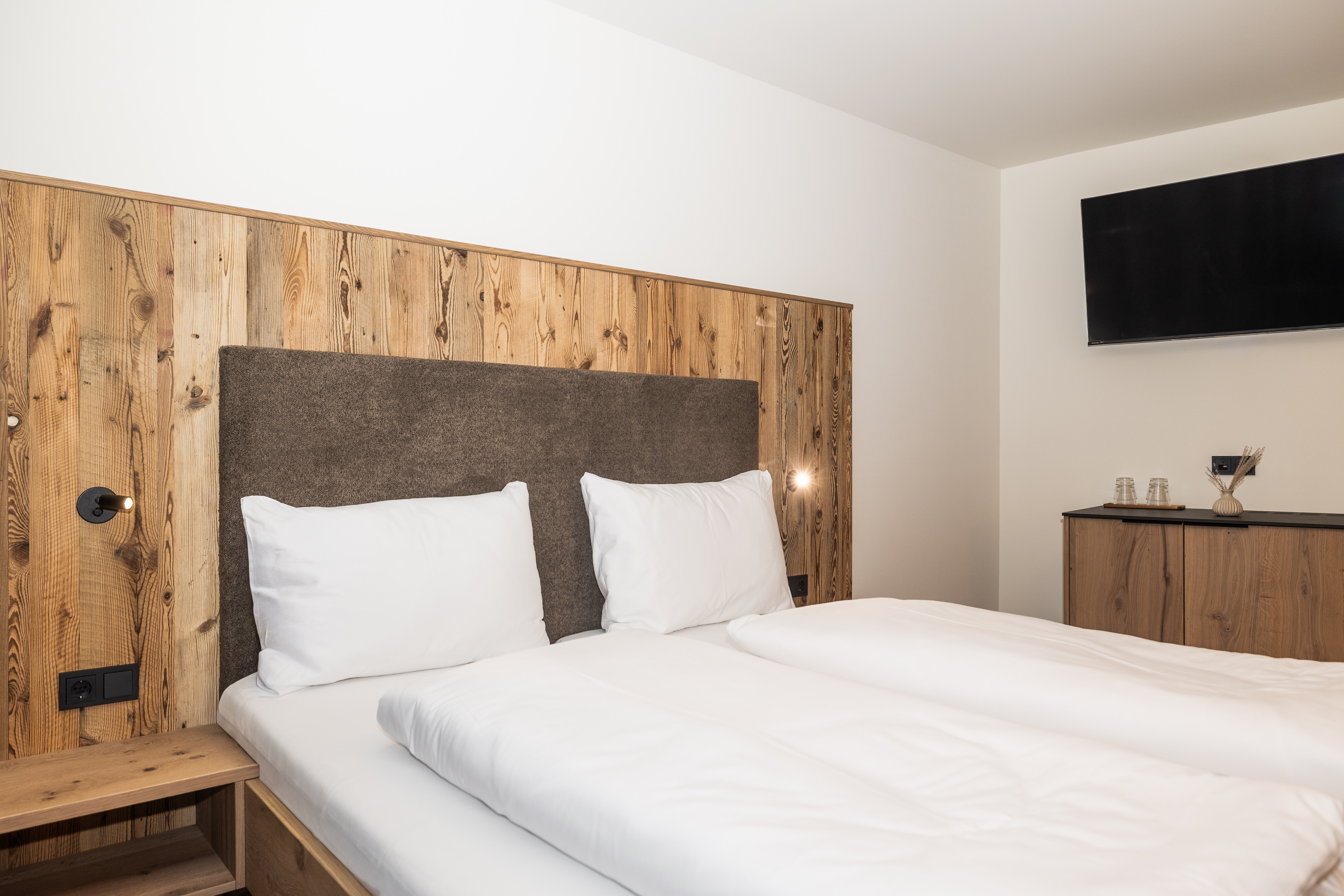 Großzügig, bequem und funktionell - so präsentiert sich der Zimmertyp "Arlscharte" seinen Gästen und bietet Wohnlichkeit und Behaglichkeit.