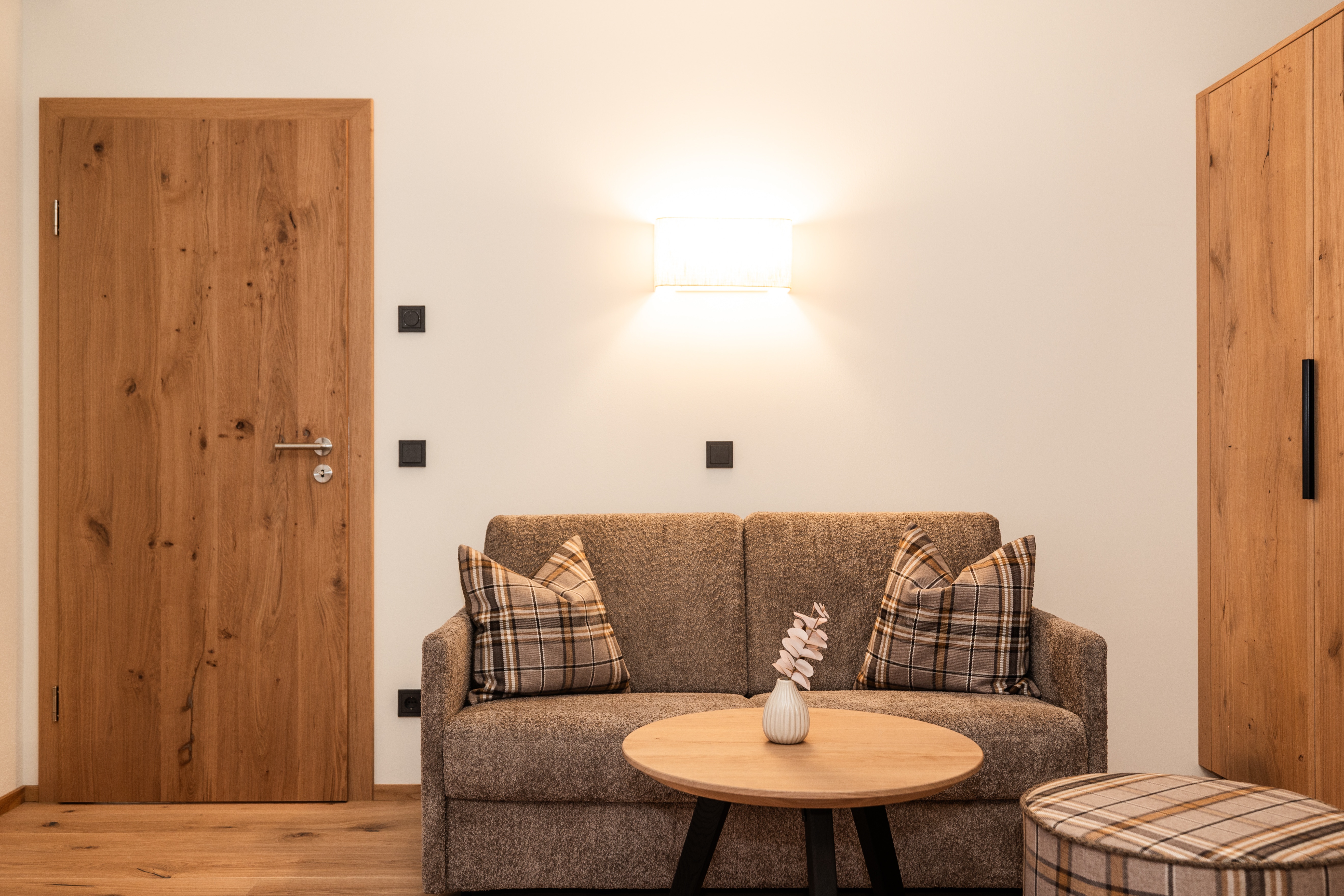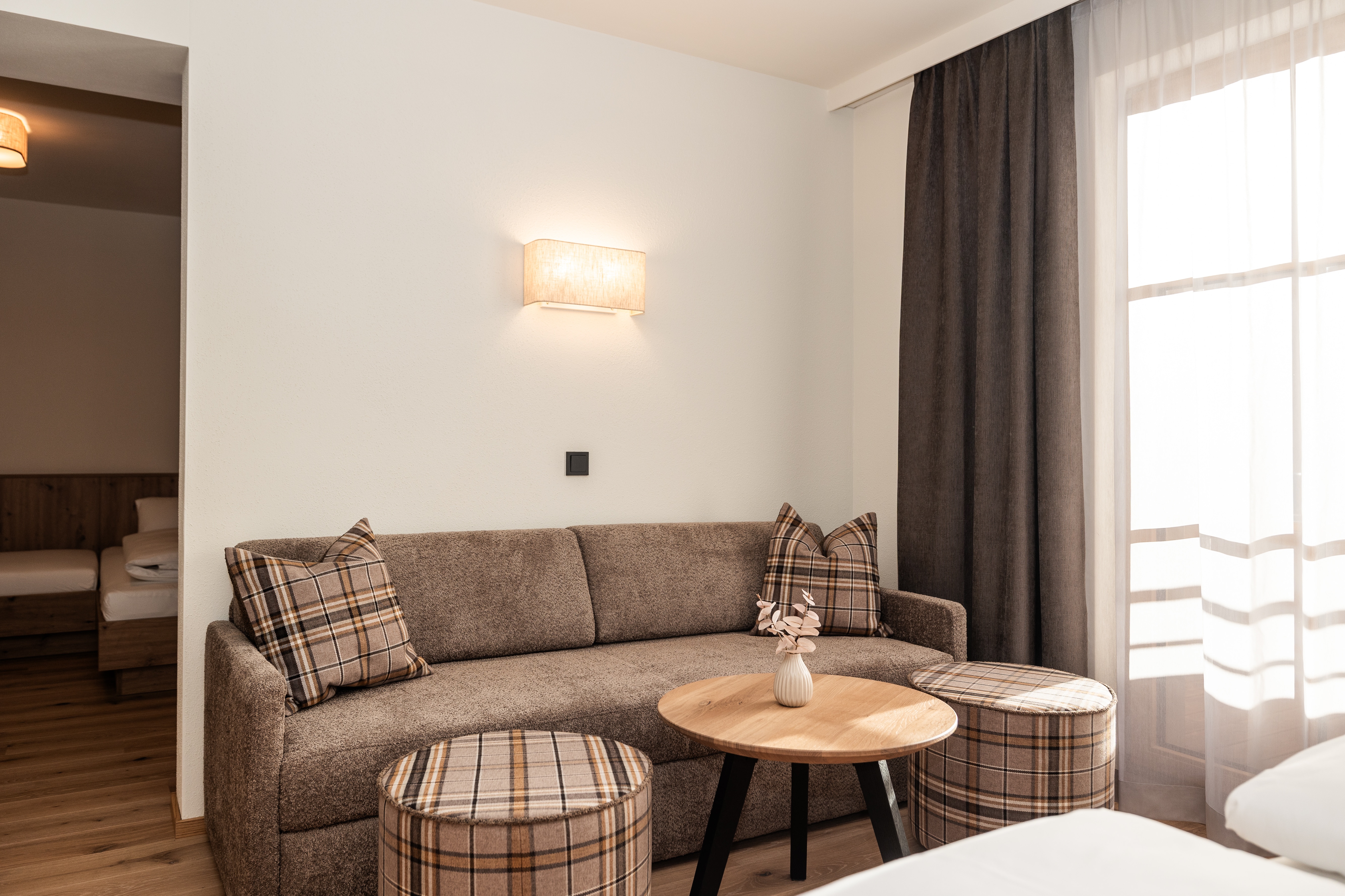 Unsere großzügig eingerichtete Familien-Suite im „Neubau“ – herrlich wohnen in den Hüttschlager Bergen.