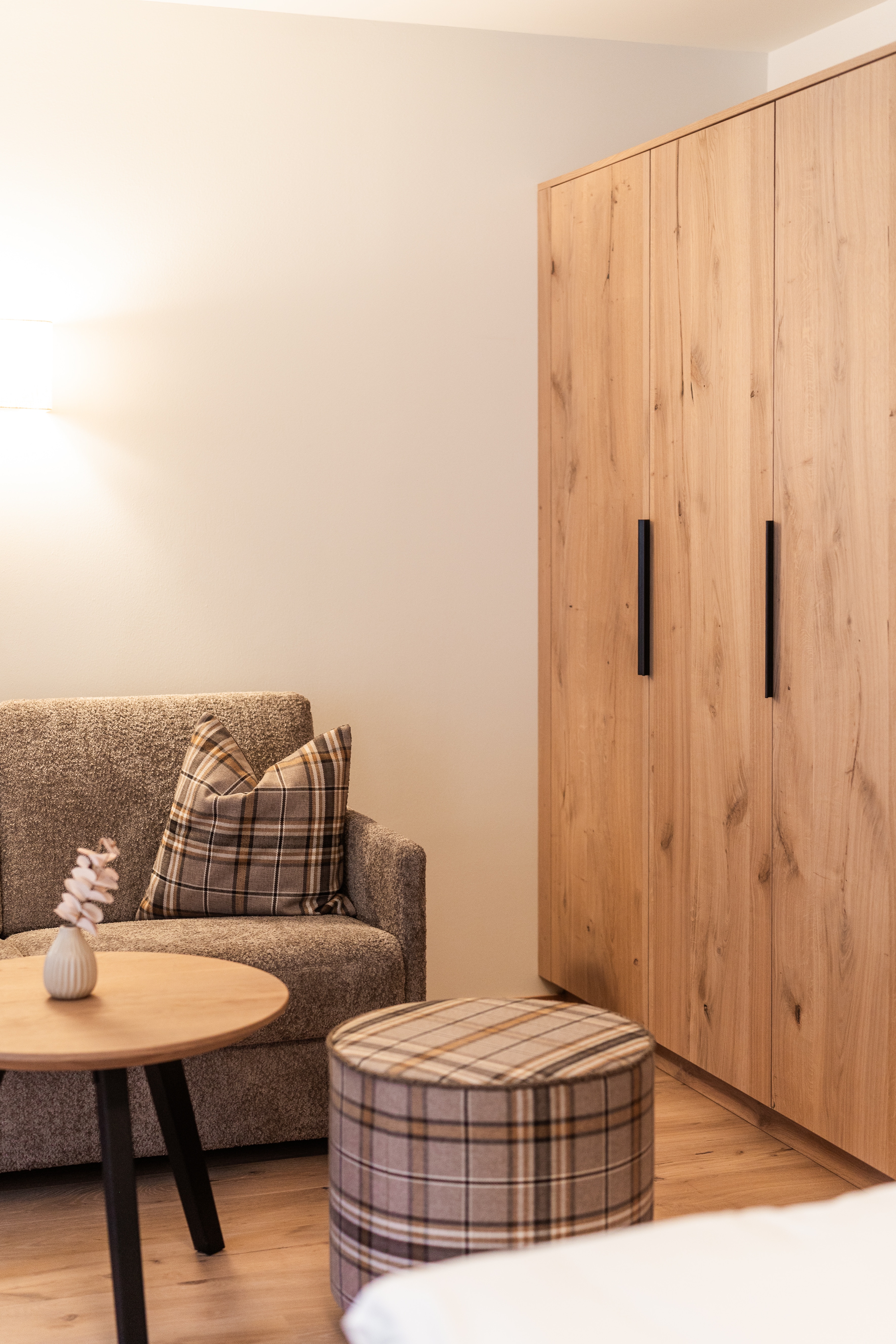 Großzügig, bequem und funktionell - so präsentiert sich der Zimmertyp "Draugstein" seinen Gästen und bietet Wohnlichkeit und Behaglichkeit.