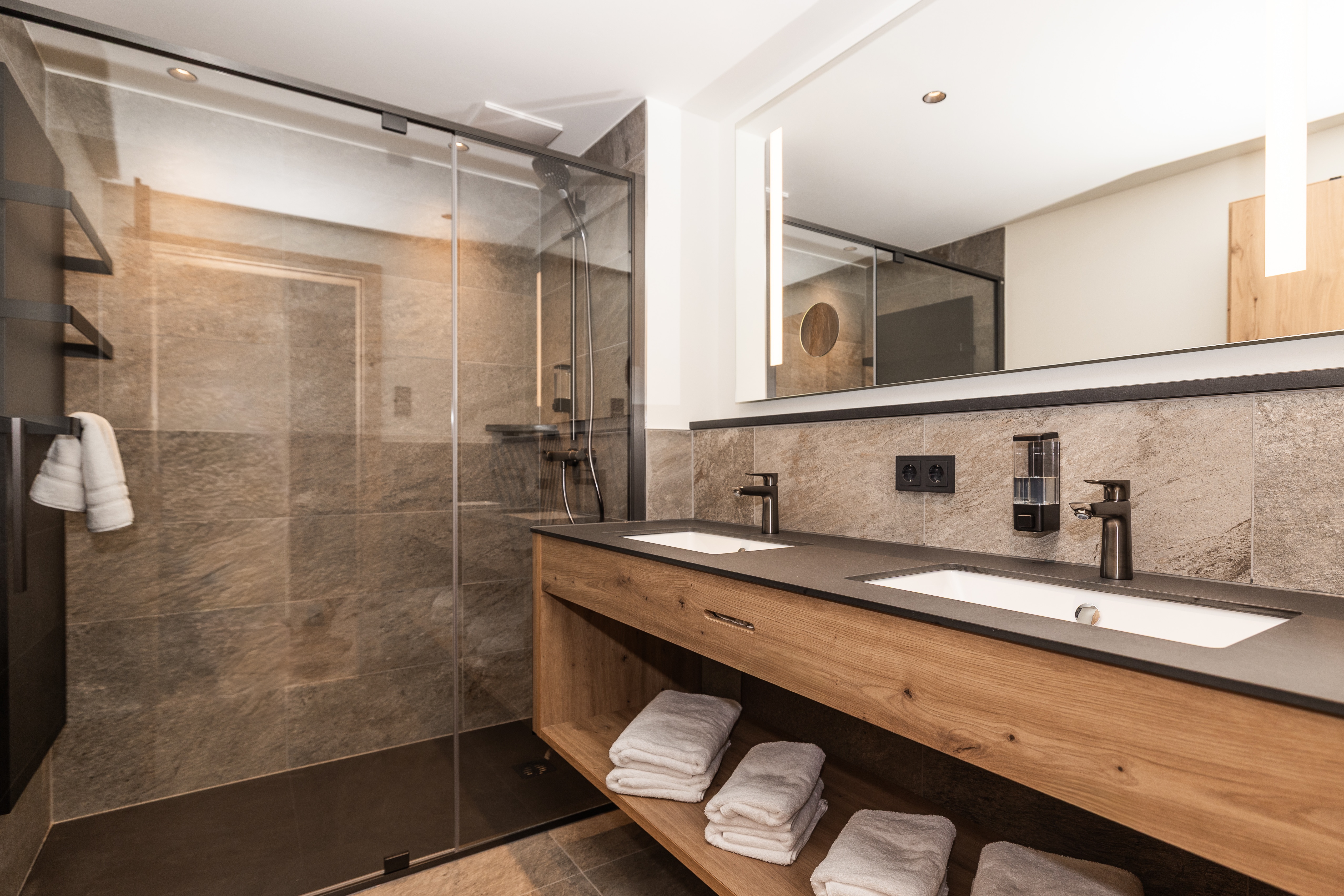 Großzügig, bequem und funktionell - so präsentiert sich der Zimmertyp "Keeskogel" seinen Gästen und bietet Wohnlichkeit und Behaglichkeit.